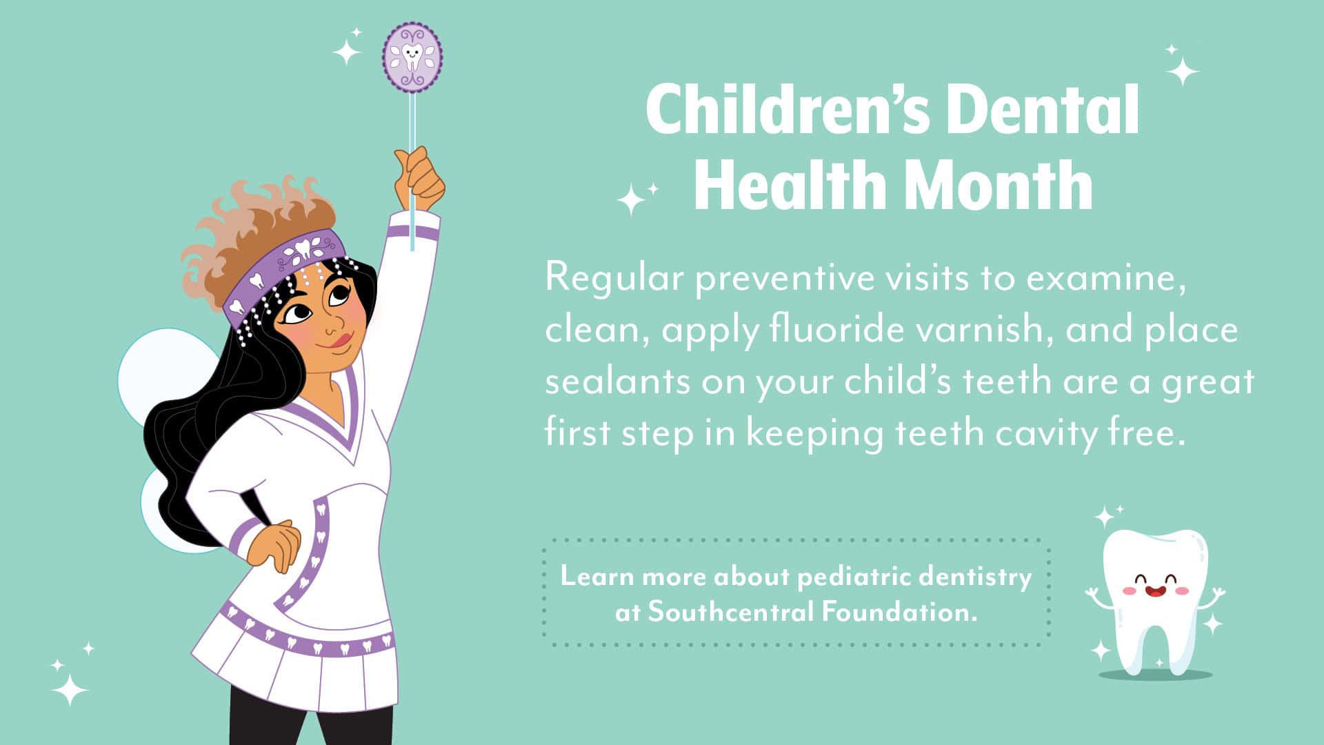 February is Children’s Dental Health Month. Southcentral Foundation’s integrated dental care teams offer personal connection, continuity of care, and the ability to contact them directly. Did you know it is recommended children see a dentist after their first tooth emerges or by their first birthday? Establishing a relationship with your dental team at an early age ensures your child is set up for a lifetime of healthy dental habits.