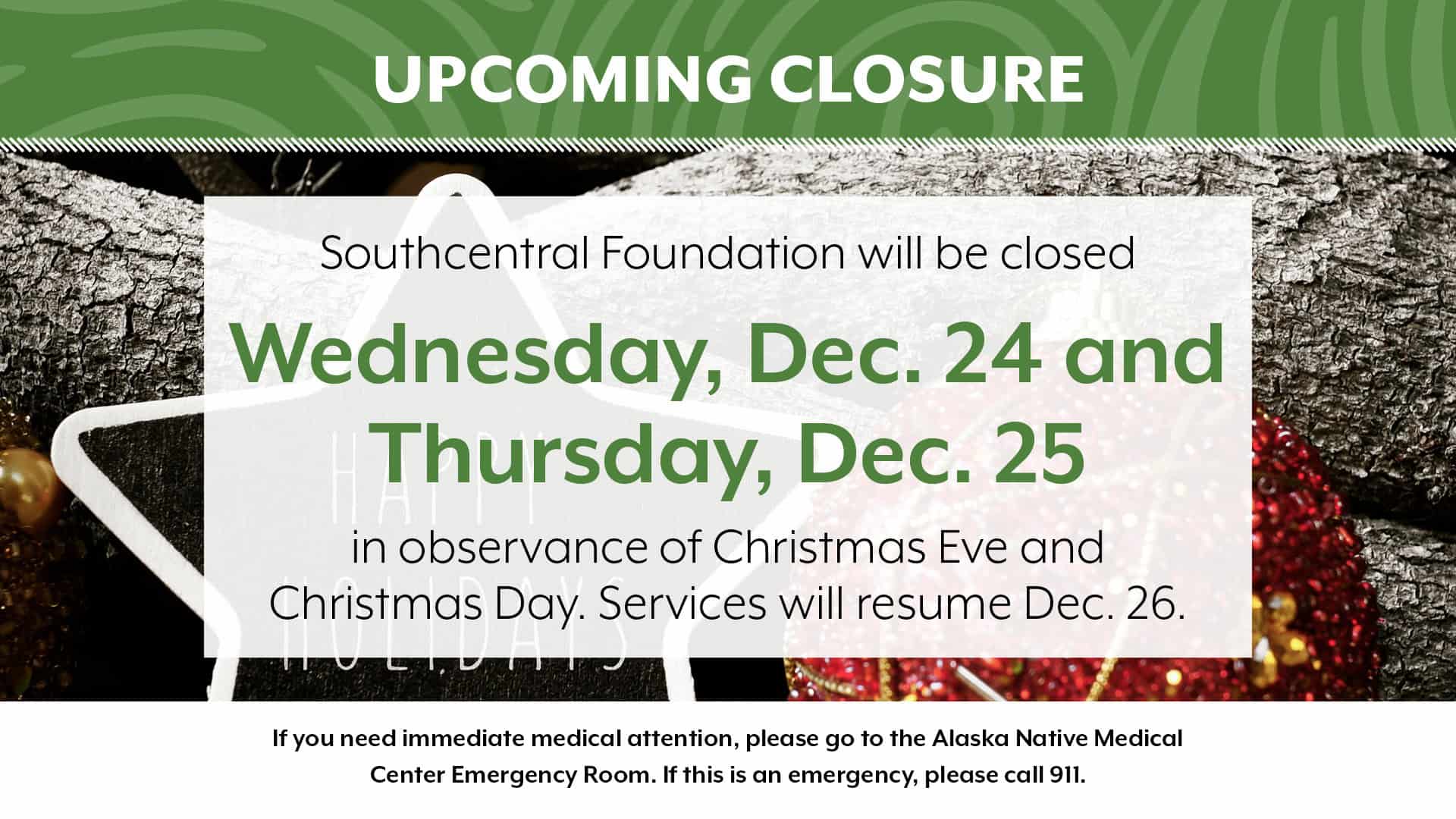 Call Southcentral Foundation Family Health Resources at 907-729-4470 or email  ScfHealthBenefitsSpecialist@Southcentralfoundation.com for further assistance.