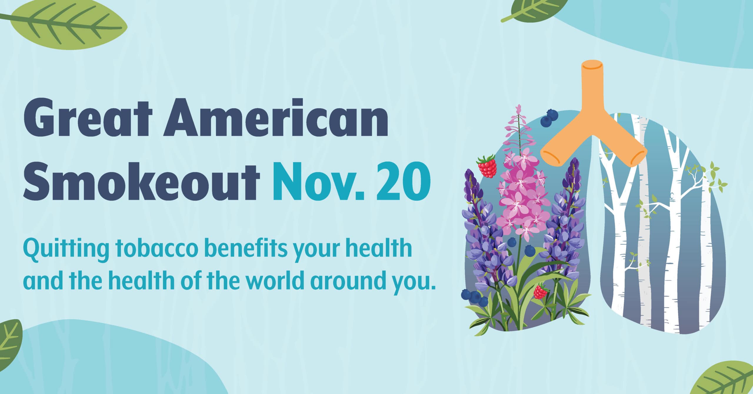 Join Benteh Nuutah Valley Native Primary Care Center Wellness Center in the lobby on Nov. 20 for the Great American Smokeout, where you can pledge to quit tobacco, learn about the health benefits of quitting, and participate in a raffle for a Big Chief smoker and accessories. If you or someone you know would like to quit, reach out to your primary care provider or the Quit Tobacco Program directly. Contact the VNPCC Wellness Center at 907-631-7360.