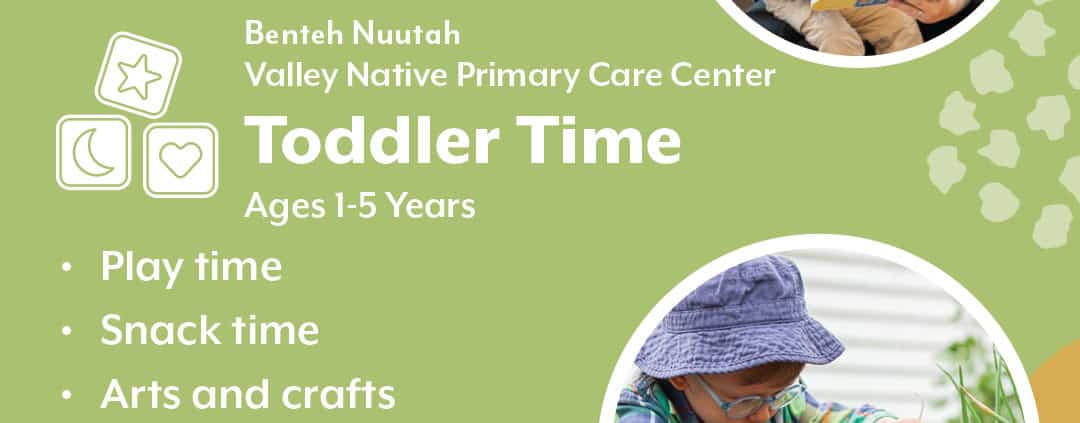 Benteh Nuutah Valley Native Primary Care Center Toddler Time is a weekly play group for toddlers to explore, move, and play. This is an ideal time to network and share experiences with other parents.